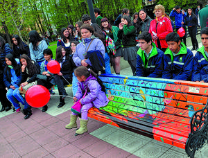 Estudiantes de Temuco pintan 147 bancas de madera