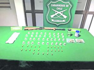 Incautan arma, munición y droga en control carretero