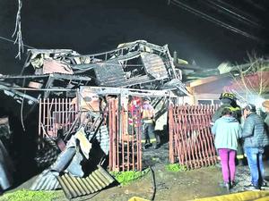 Incendio arrasa con tres casas y deja un cuarto inmueble dañado en Pedro de Valdivia