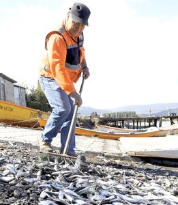 Decretan riesgo sanitario en Queule por varamiento de toneladas de sardinas