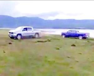 Dirigente captó a dos camionetas derrapando en el lago Galletué