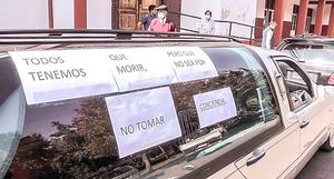 En carrozas fúnebres salieron a pedir que la gente se quede en sus casas