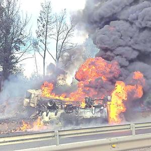 Milagrosa escapada de chofer que volcó en camión con combustible