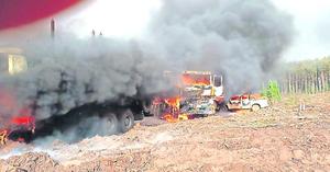 Ataques incendiarios en Lumaco y Cholchol: queman cinco camiones y una máquina