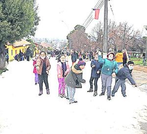 Niños de Los Sauces disfrutaron de la nieve en las calles