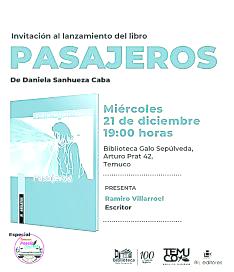 Daniela Sanhueza presenta hoy su libro "Pasajeros" en la Biblioteca Municipal Galo Sepúlveda